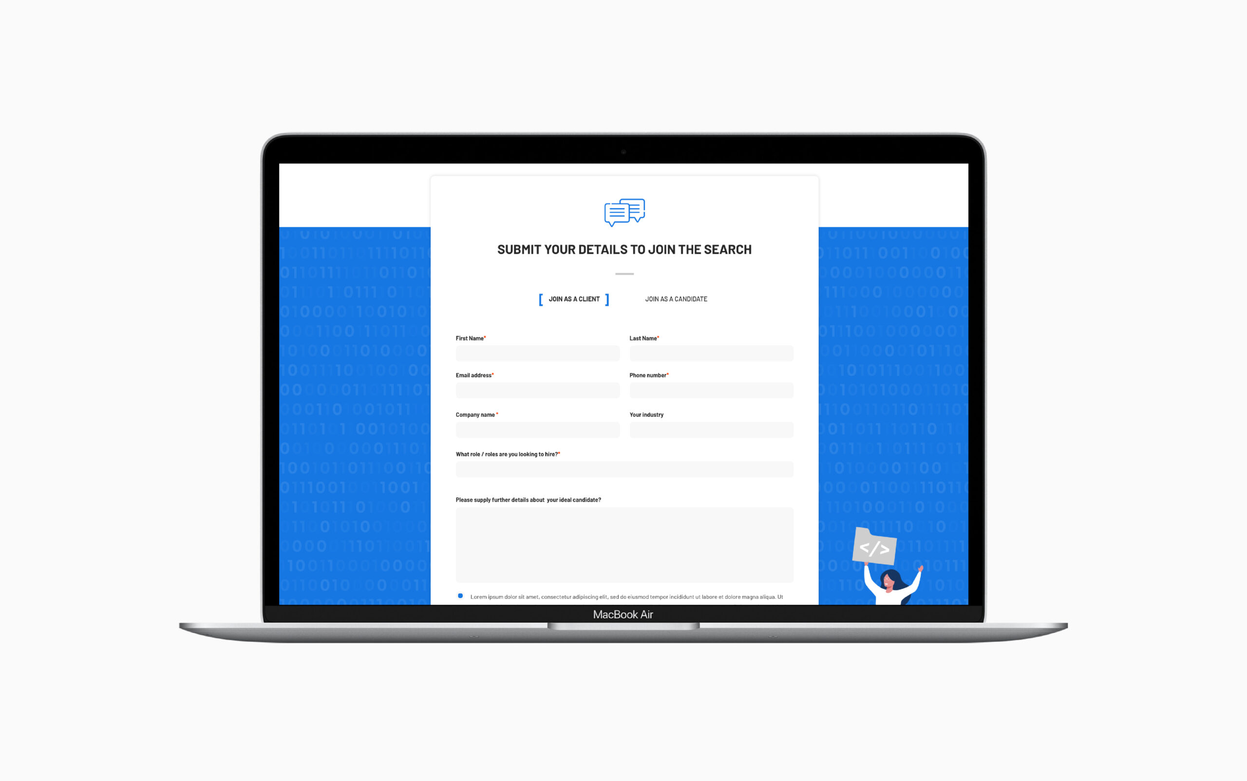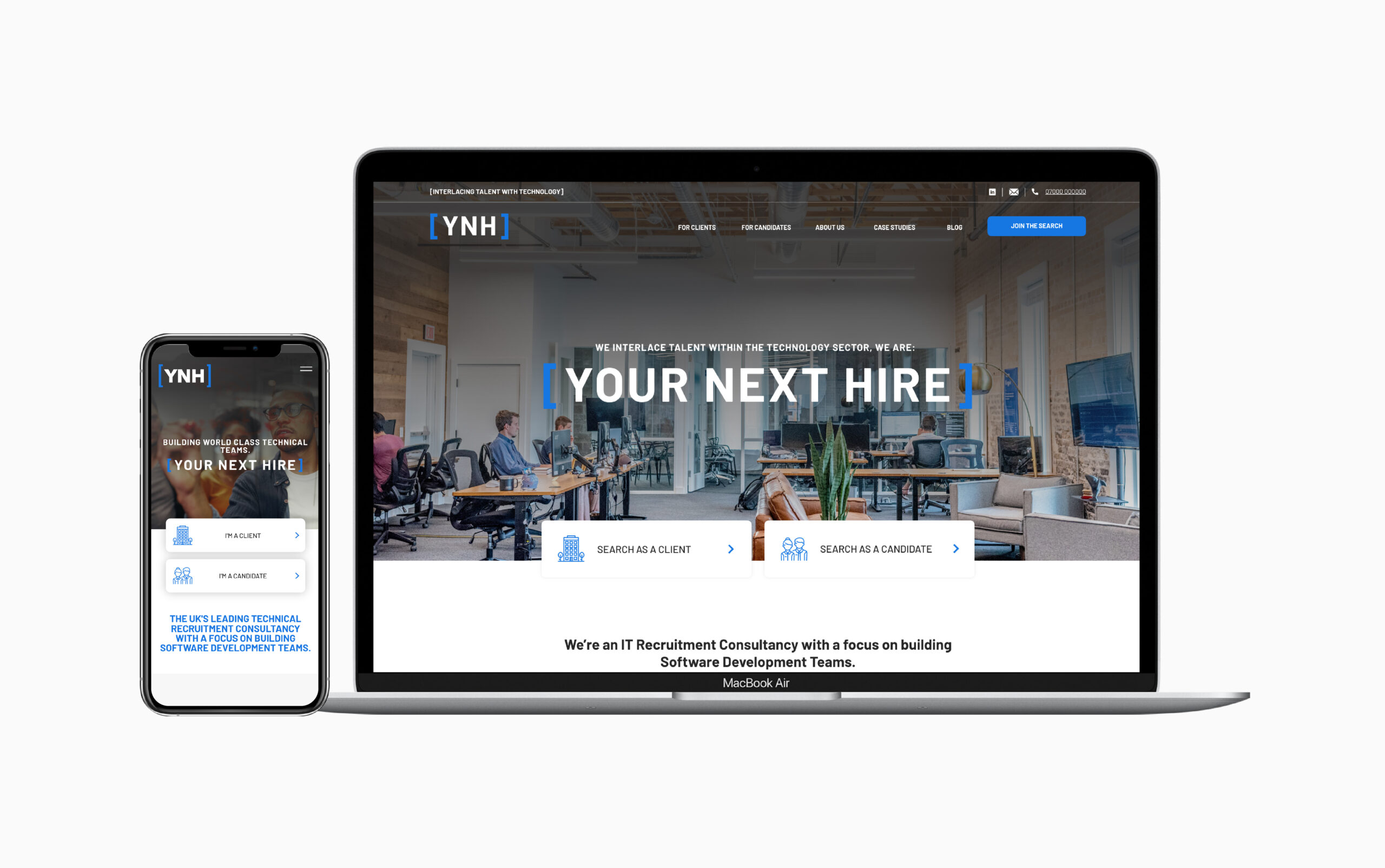 Branding Workshop – This was to discover the meaning behind 'Your Next Hire' and to work together in creating syncronised brand identity Technical Specification – This is to find all existing functionality and checklist this for the client Wireframes – Consisting of a flexible template structure Interactive prototype – Allowing the client to interact with the wireframes Desktop & Mobile Designs – Created with free reign on brand guidelines Handoff files in Zeplin – Ready for handoff to the external Developer