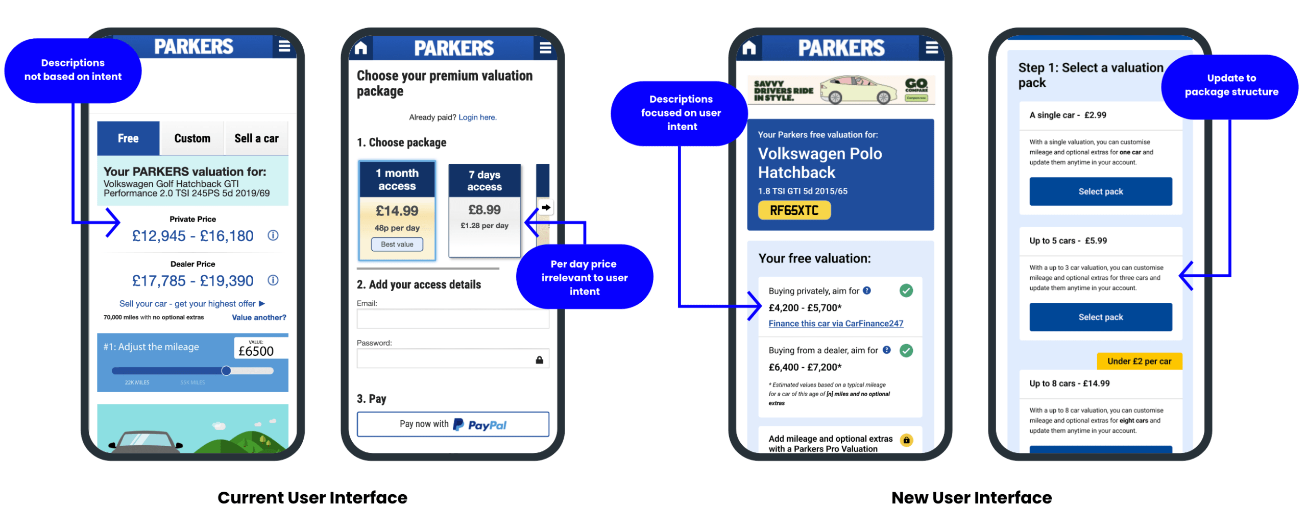 The new UX strategy doubled click-through rates to the Custom Valuations funnel, validating the approach and securing support from all stakeholders. Its adoption enabled the expansion of scope to include a new Parkers account area, allowing users to save and manage their valuations, which improved customer retention through account-based engagement. The feature will also unlock more targeted, value-driven communications, including promotion of complementary Parkers services such as partner-led vehicle sales and finance quote generation during the purchase journey.