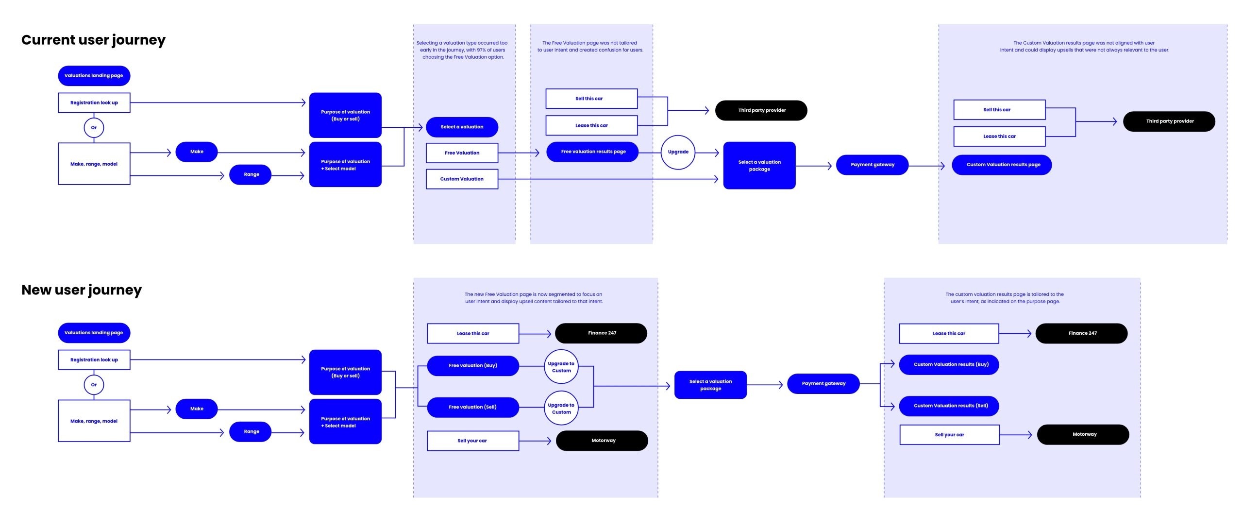• Designed two alternative user journeys to reduce friction in the Valuations experience