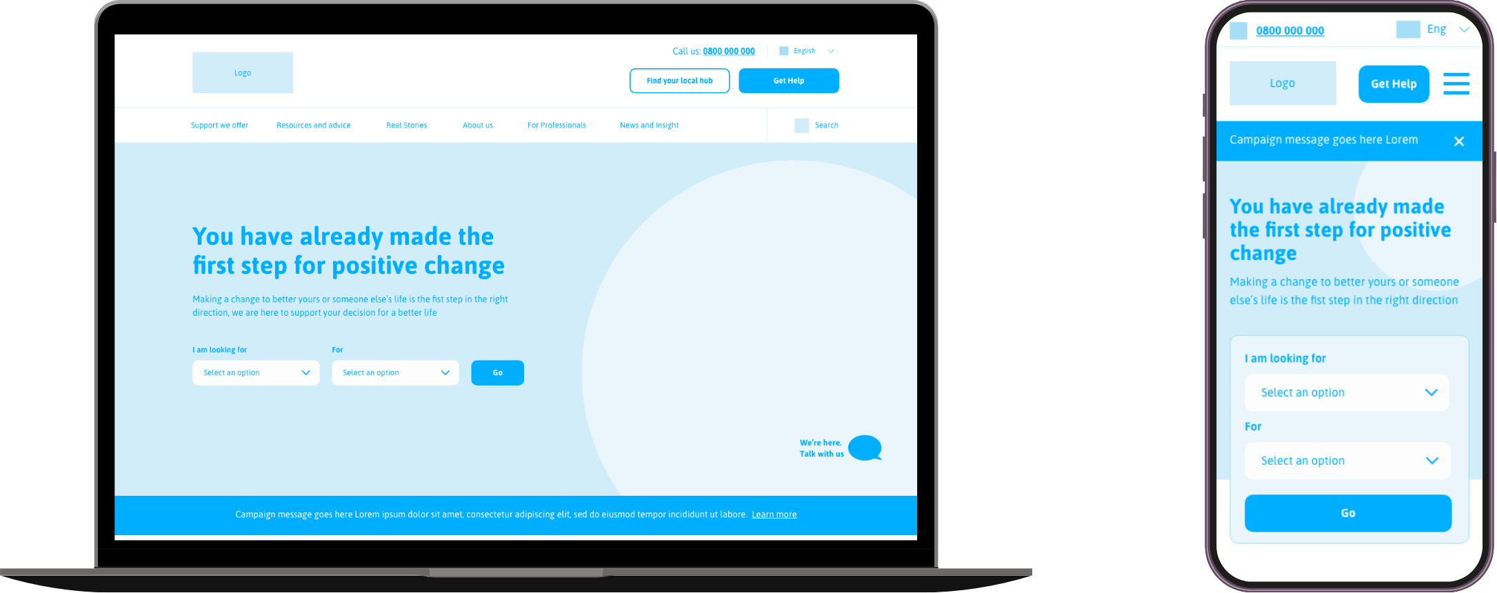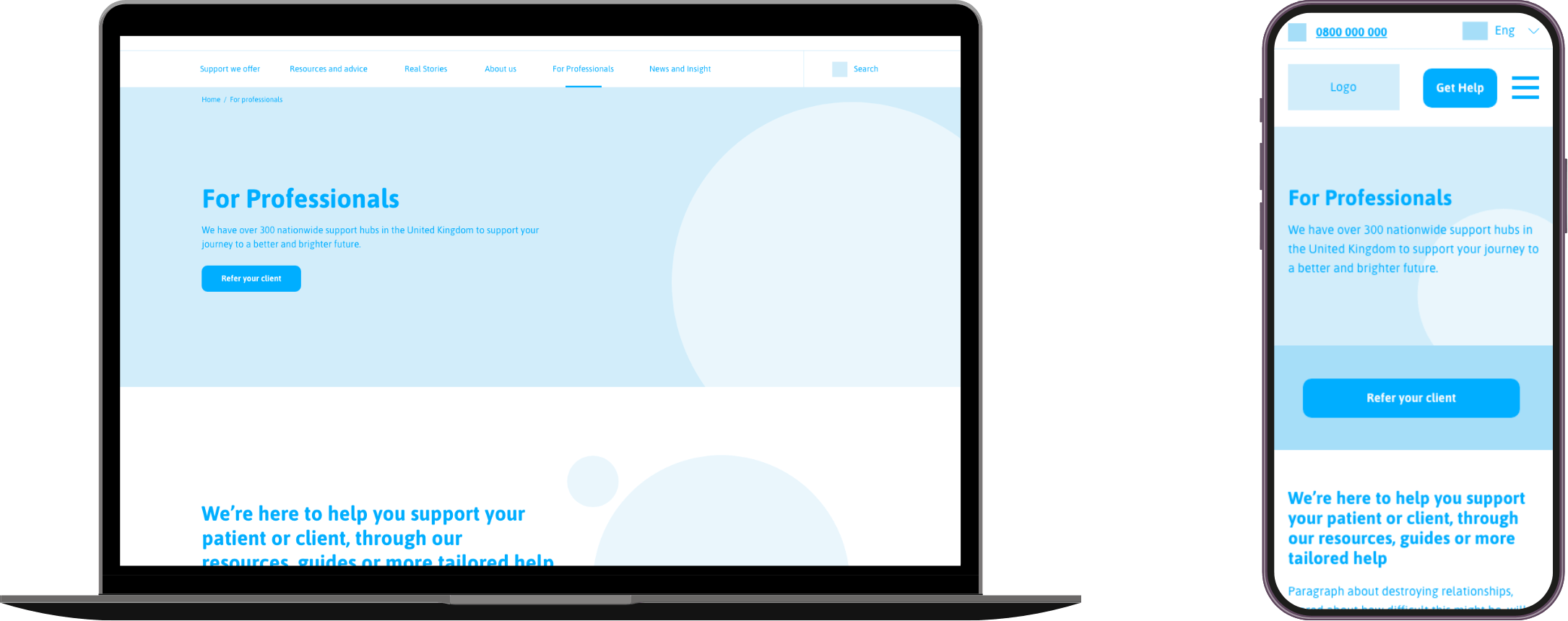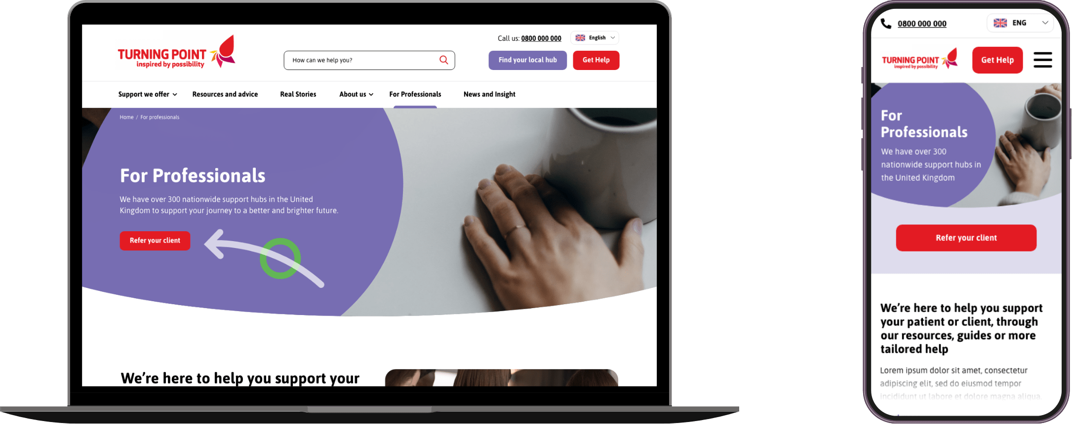 Turning Point provides support for a wide range of needs, and as their services expanded across the UK, the website structure became increasingly complex, with multiple overlapping user journeys. They required a new website that would resonate both with people seeking support and with organisations looking to sponsor and support their work.